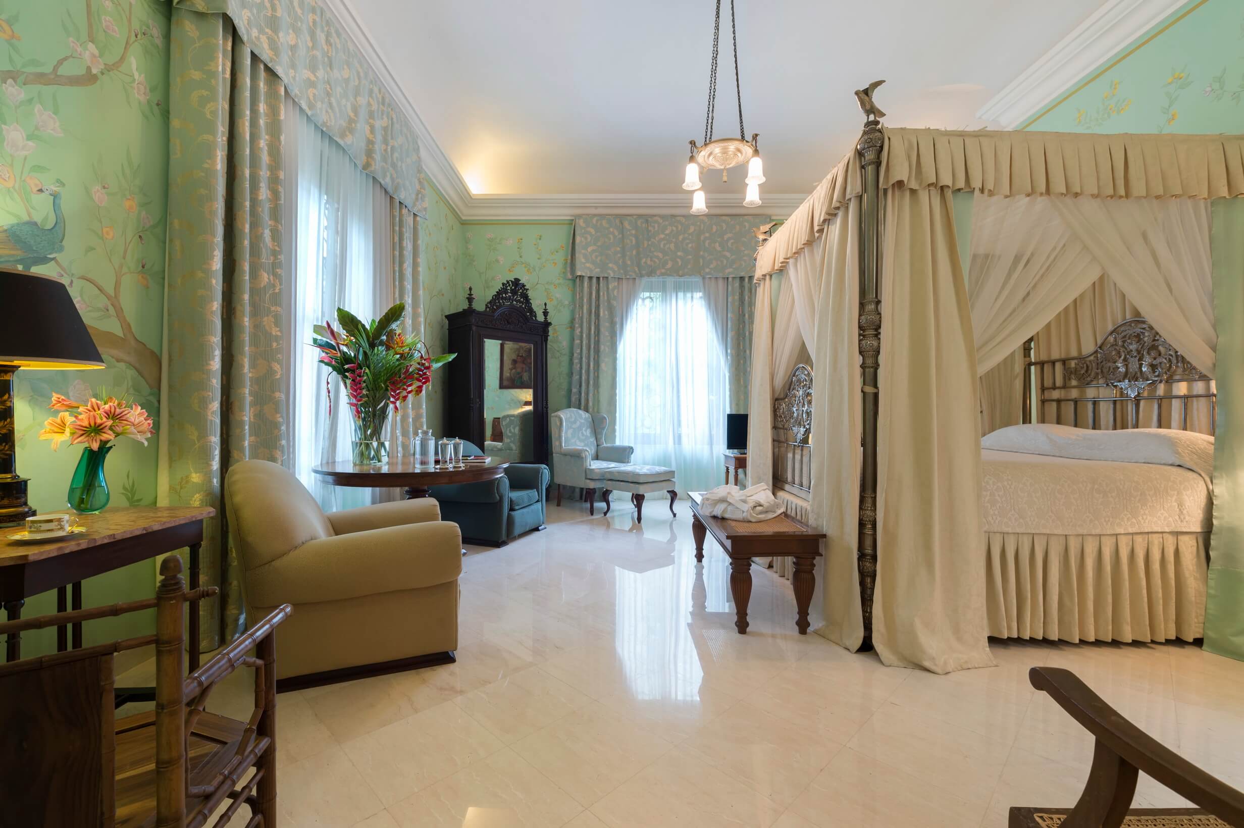 Located in the West Wing of the Villa Leduk, adjacent to the Kaliandra Wellness Retreat, three Royal Rooms offer luxurious elegance for the most discerning guests. The Leduk Royal Dua Room is beautifully decorated with handpainted murals and antique furniture and offers a spacious seating area and a large marble bathroom.