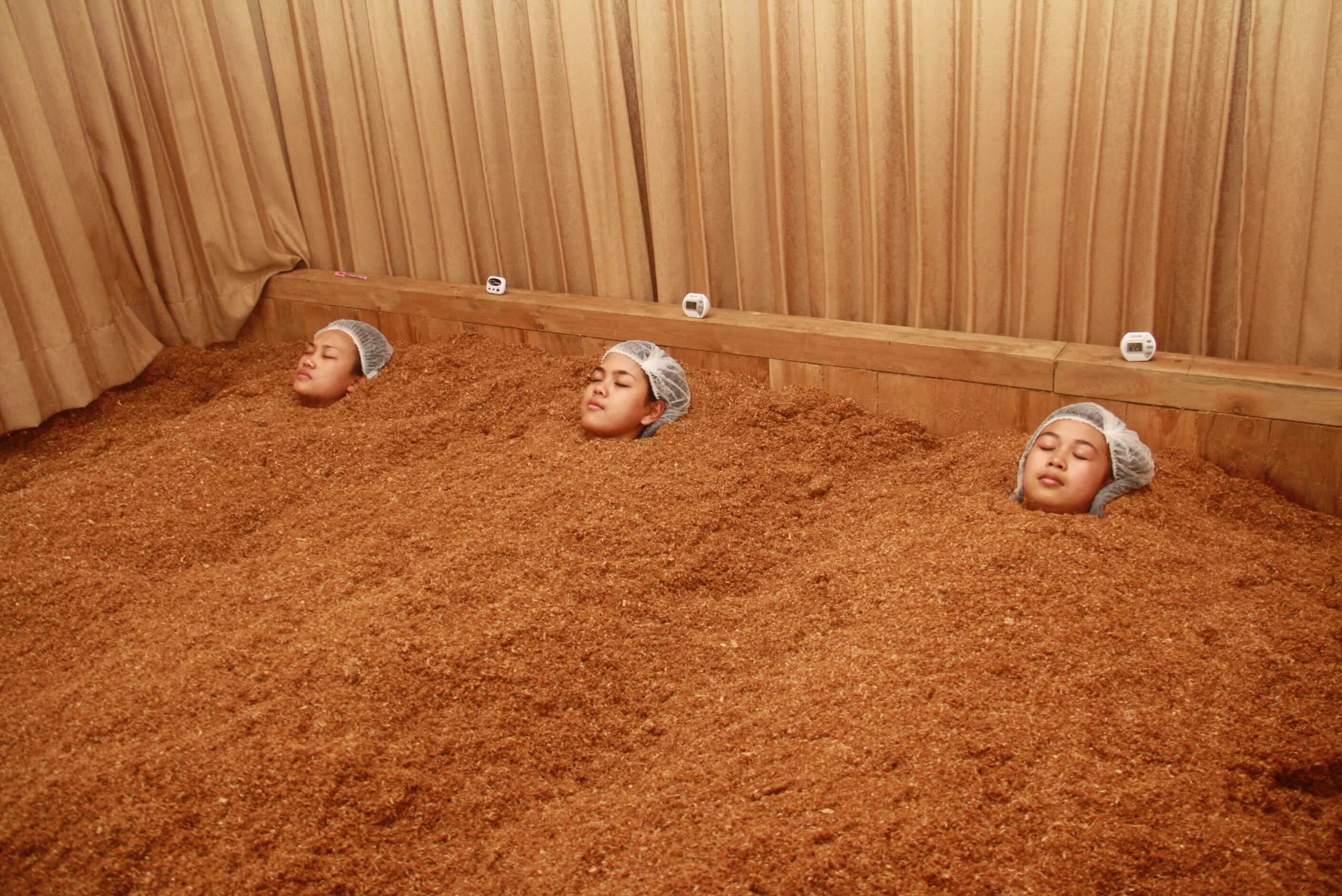 The Enzyme Therapy is a detox process, that removes toxins from your system, by soaking your body in a special Enzyme Bath, made up of sawdust, rice bran, and enzyme liquid, for 10-20 minutes. The bath naturally maintains a temperature of about 70° C. For optimal results, it is recommended to take the Enzyme Bath twice a day for 10-20 minutes, with an interval of 4-5 hours, for a period of 3-4 days. And to help with recovery of illness, please discuss with us a bespoke programm.